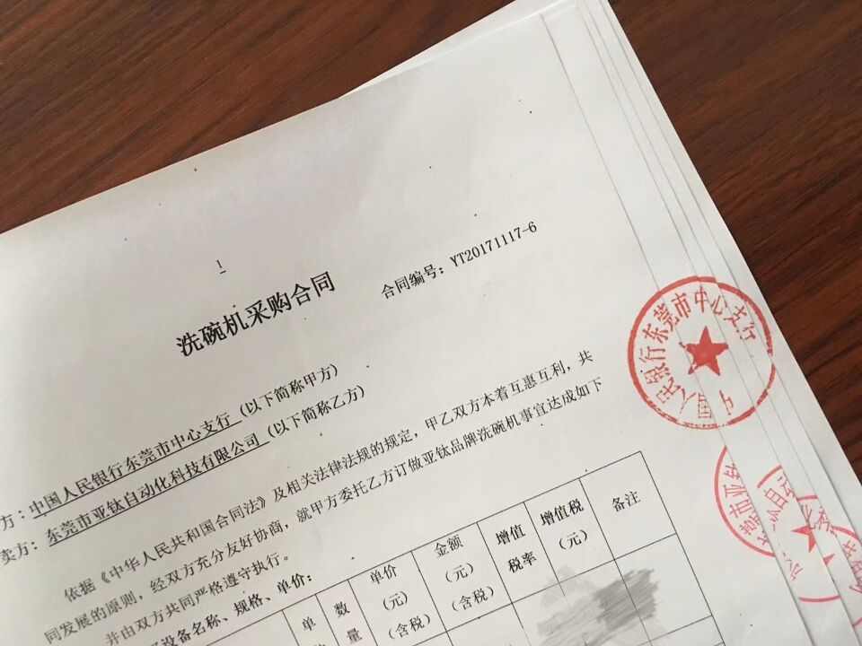 中國人民銀行東莞市中心支行在經(jīng)過對比國內(nèi)多家洗碗機品牌中選擇了亞鈦洗碗機,非常感謝中國人民銀行東莞市中心支行對亞鈦的信任與支持。