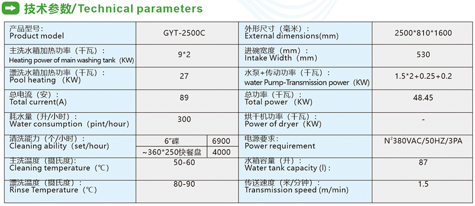 • 雙缸兩道漂洗通道式洗碗機GYT-2500C