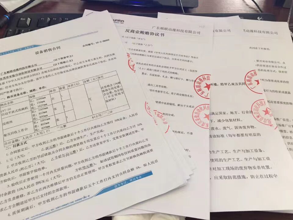 廣東順聯動漫使用亞鈦食堂洗碗機GYT-60已經滿一年了,前陣子特意回訪廣東順聯動漫食堂負責人黃總,黃總對亞鈦洗碗機非常滿意,特別對洗碗機的清洗效果和速度給予高度評價,后來希望對洗碗機的改進提了幾點建議,其建議我們也在后進改進中會重點注意,希望洗碗機能越來越好的服務客戶。為此祝廣東順聯動漫生意興隆。